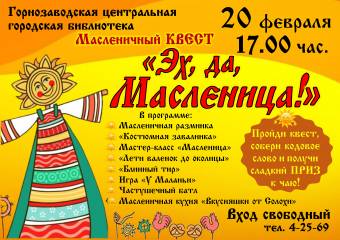 Дорогие друзья! Приглашаем вас окунуться в атмосферу весёлых народных гуляний и стать участниками уникального масленичного квеста!